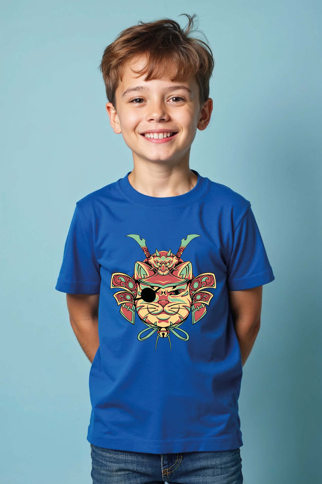 Tribal Samurai Cat with Eyepatch Kids T-ShirtCute Cool Kids T-Shirt – Dr
