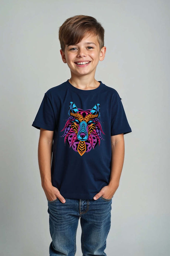 Tribal Wolf Face Art T-Shirt for Kids – Colorful Abstract Animal Design, Premium
