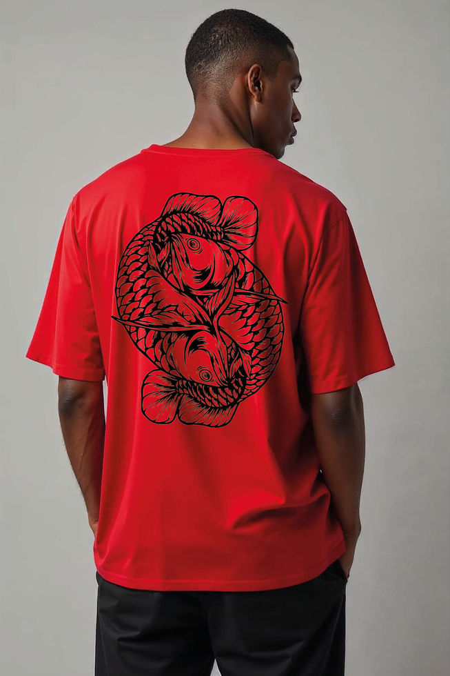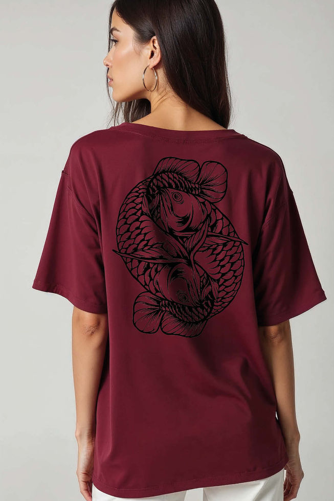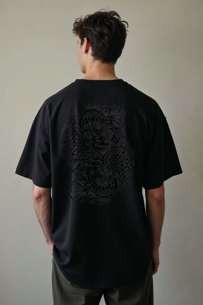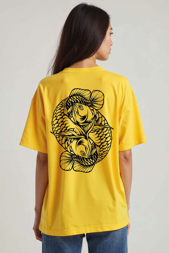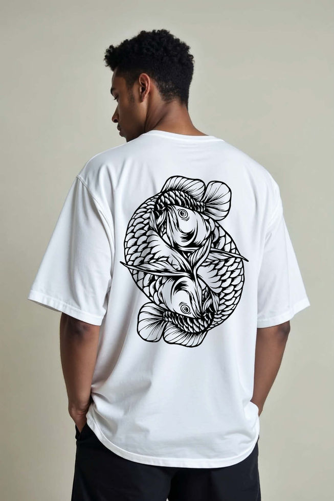 Twin Koi Fish Cool Unisex Drop Shoulder Oversized T-Shirt For Men & Women