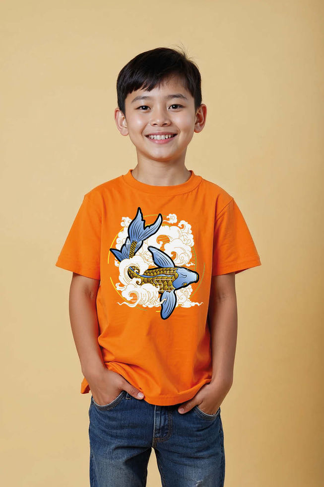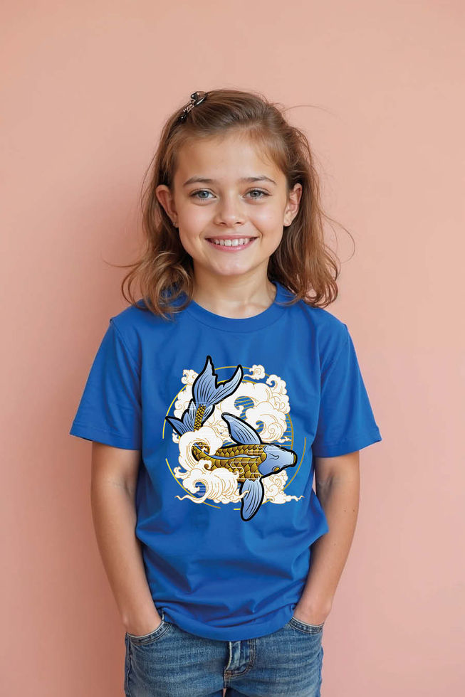Two Blue Koi Clouds Comfortable Kids Graphic Tee – Drawing Print Design for Boys