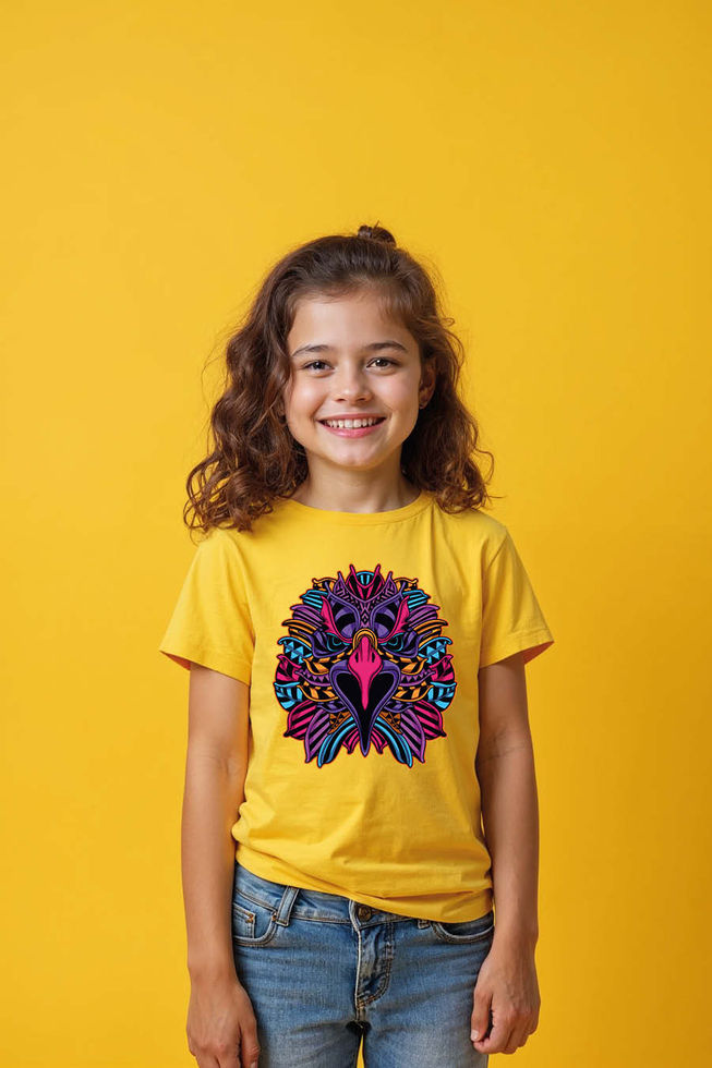 Vibrant Abstract Geometric Eagle Head T-Shirt for Kids | Neon Tribal Bird