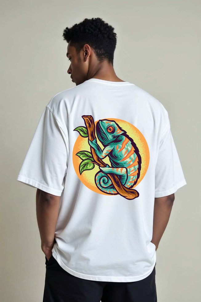 Vibrant Climbing Chameleon Unisex Oversized Drop Shoulder T-Shirt