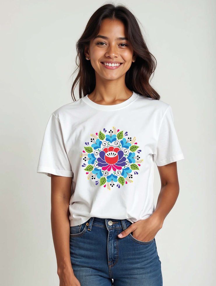 Vibrant Floral Folk Art Mandala Chic Women’s Printed Graphic Streetwear T-Shirt