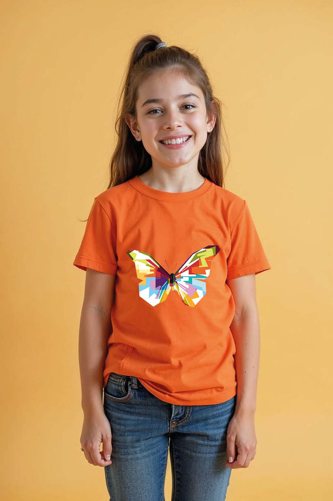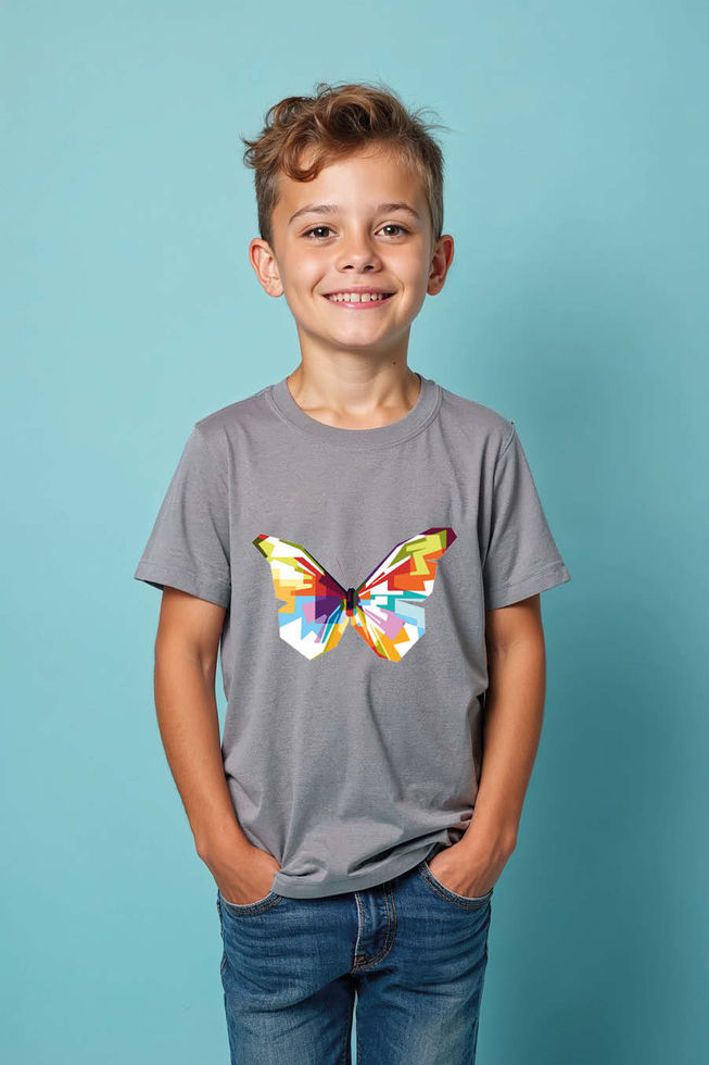 Vibrant Geometric Butterfly Kids Graphic Tee Cotton Typography Print T-Shirt