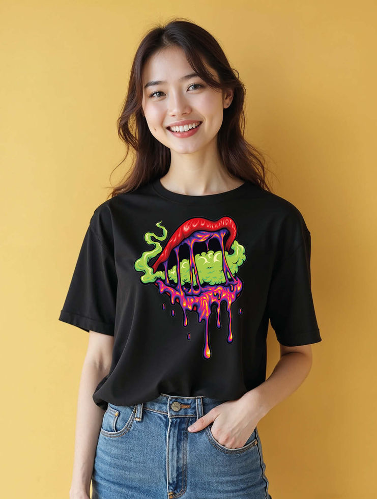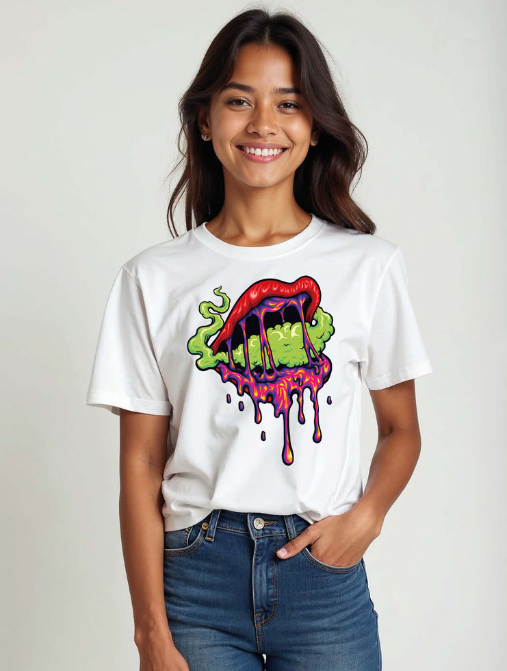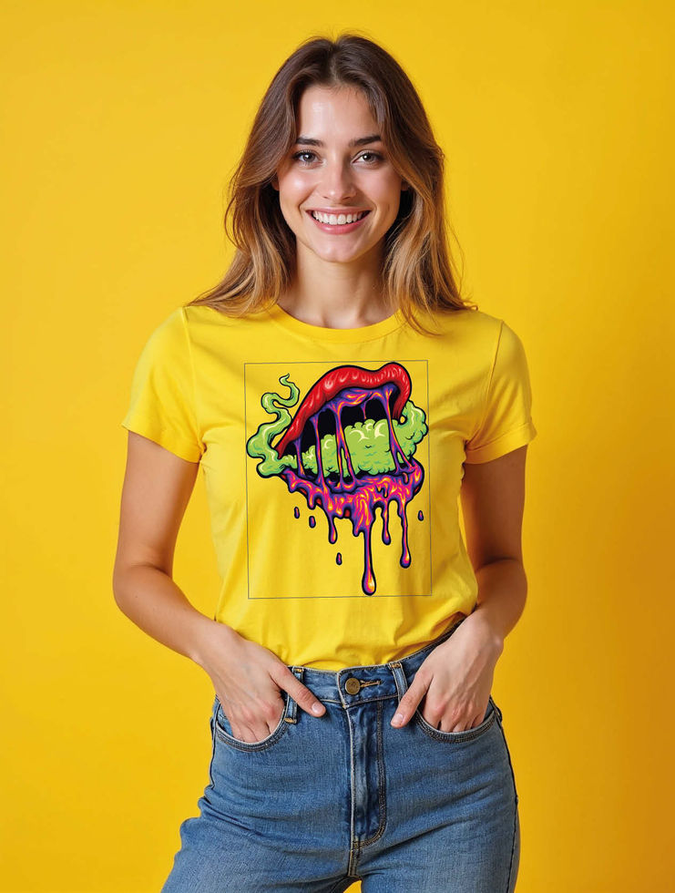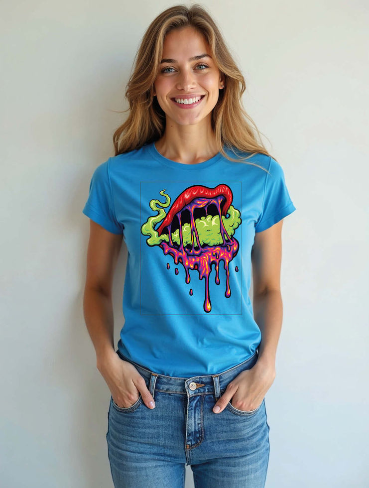 Vibrant Melting Pop Art Lips Trendy Women’s Quote T-Shirt – Sale