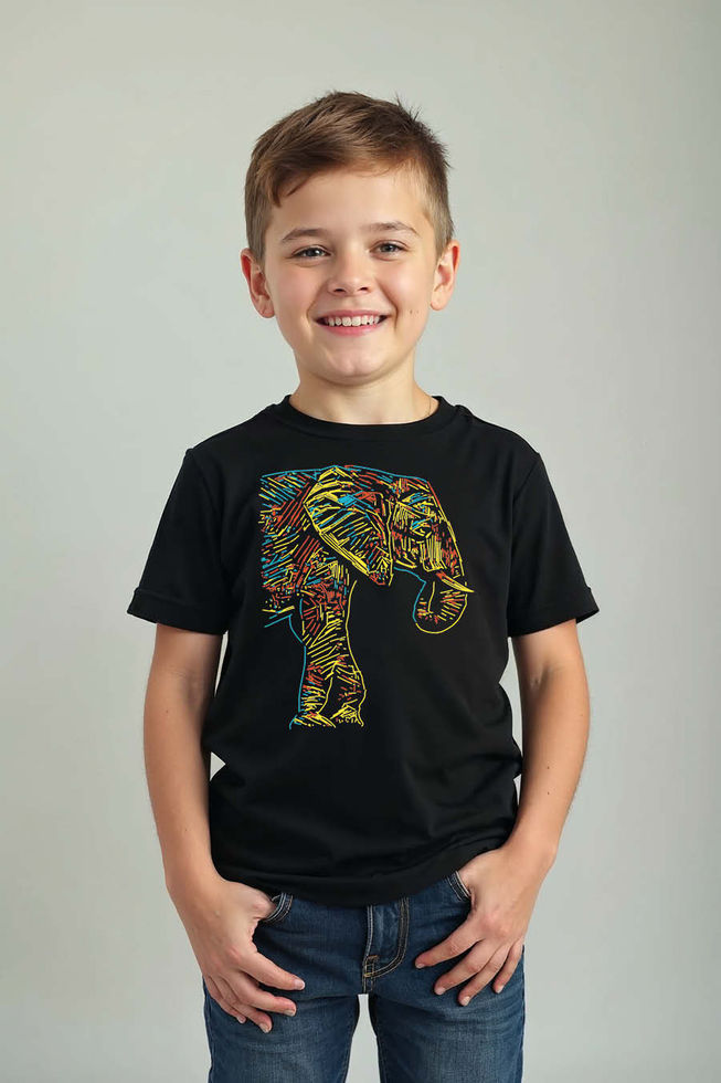Vibrant Mosaic Elephant Kids Graphic Tee Playful Cool Cartoon Kids T-Shirt