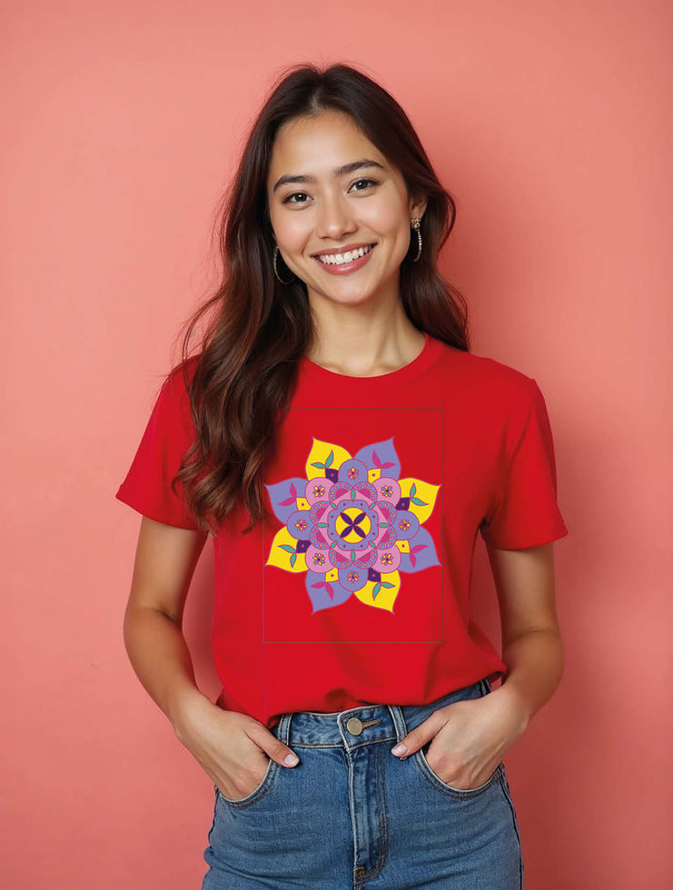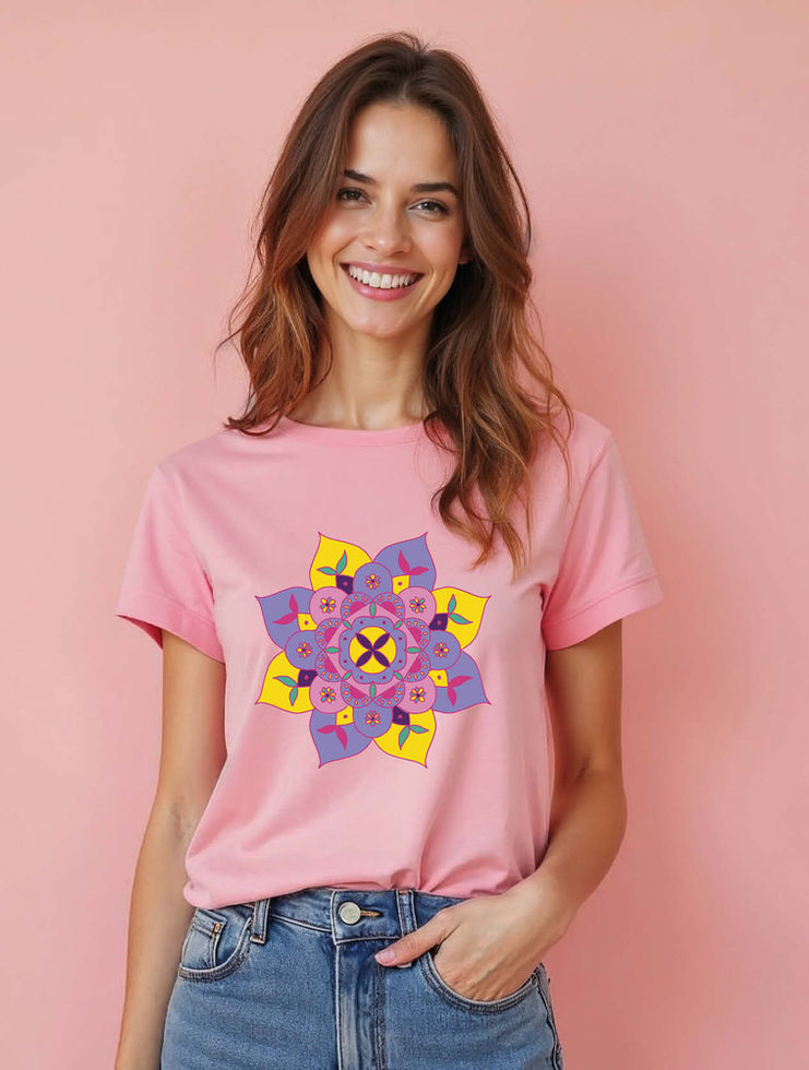 Vibrant Petal Mandala Stylish Women’s Printed Graphic Streetwear T-Shirt