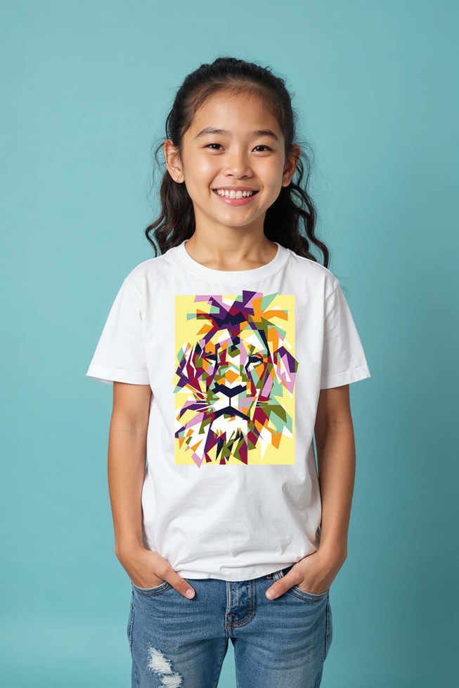 Vibrant Pop Art Geometric Lion Kids Graphic Tee Casual Kids Printed T-Shirt