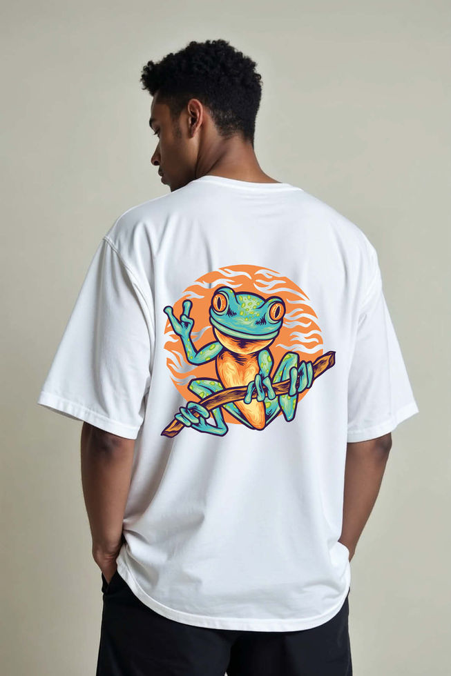 Vibrant Rock and Roll Tree Frog urban Unisex Oversized Drop Shoulder T-Shirt