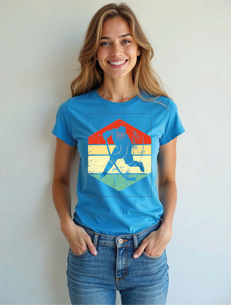 Vintage Distressed Hockey Player Classic Women’s Printed T-Shirt – Hot Deal