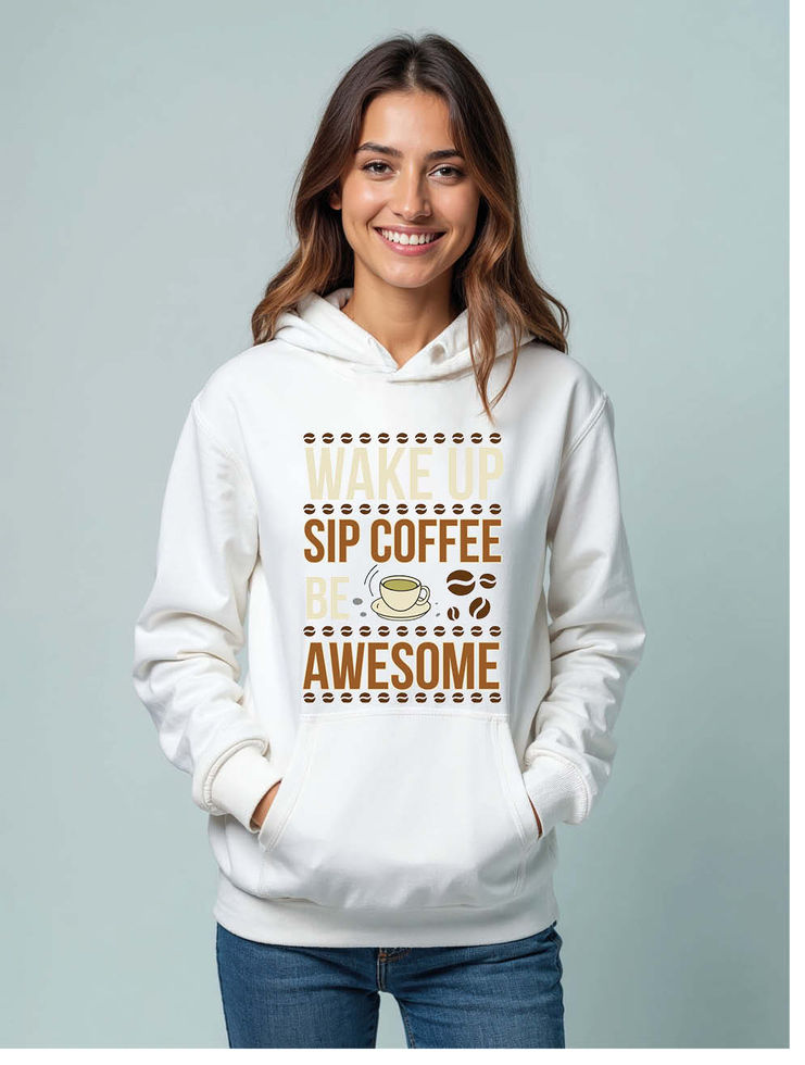 wake up sip coffee be awesome Urban Women’s Printed Hoodies – Sale
