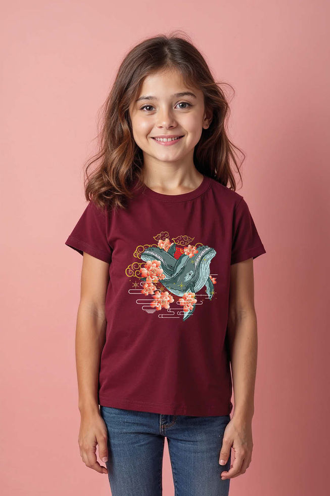 Whale and Underwater Sakura Cotton Cool Cartoon Kids T-Shirt – Typography