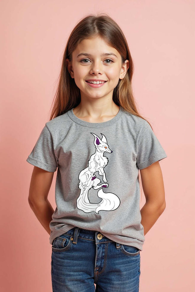 White Spirit Fox Modern Cartoon Printed T-Shirt for Boys & Girls – Artwork Print