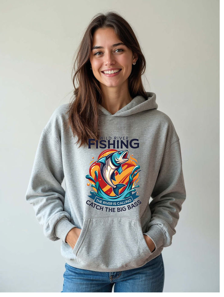 wild river fishing the river is calling catchb the big bass Trendy Women’s Hoodi