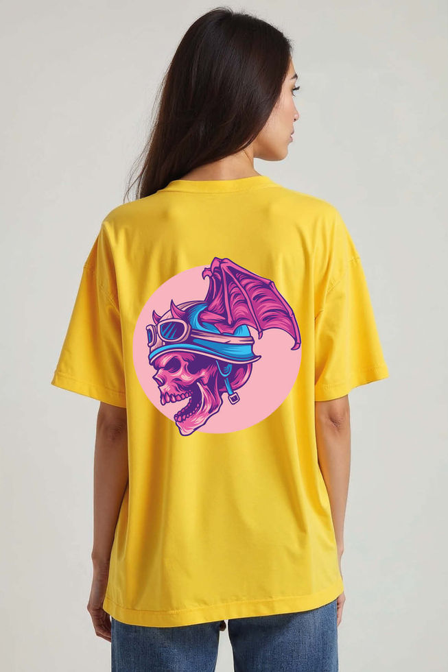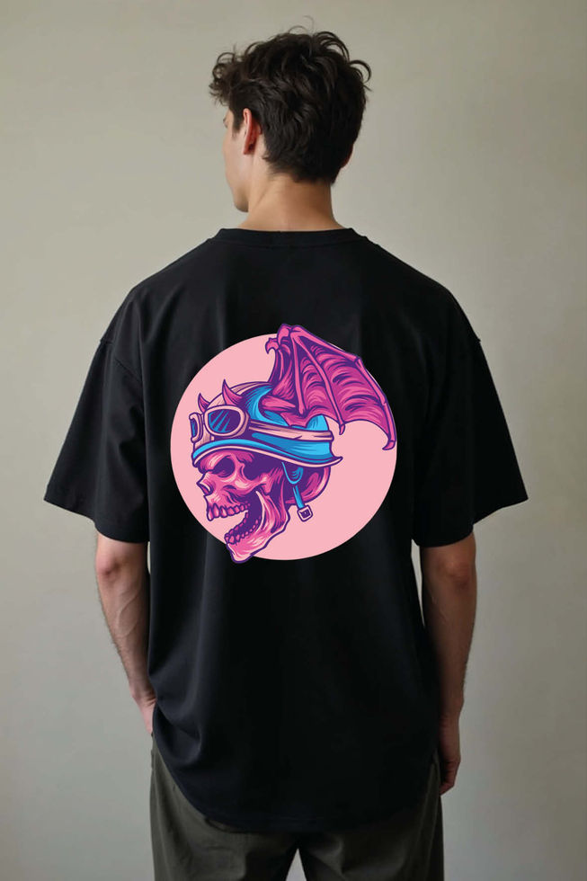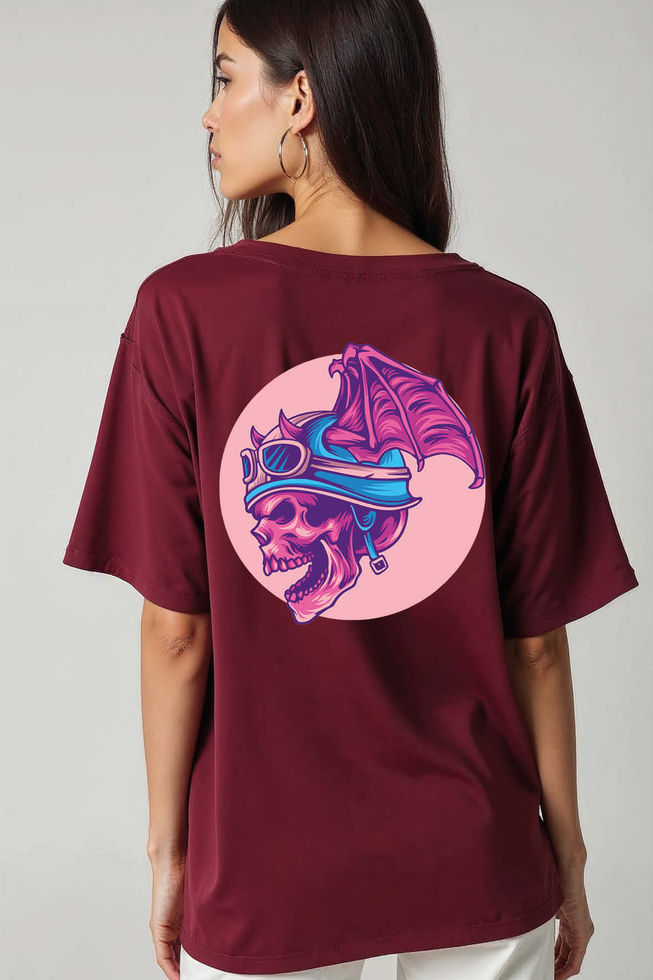 Winged Skull Rider Premium Funny Unisex Oversized Drop Shoulder T-Shirt