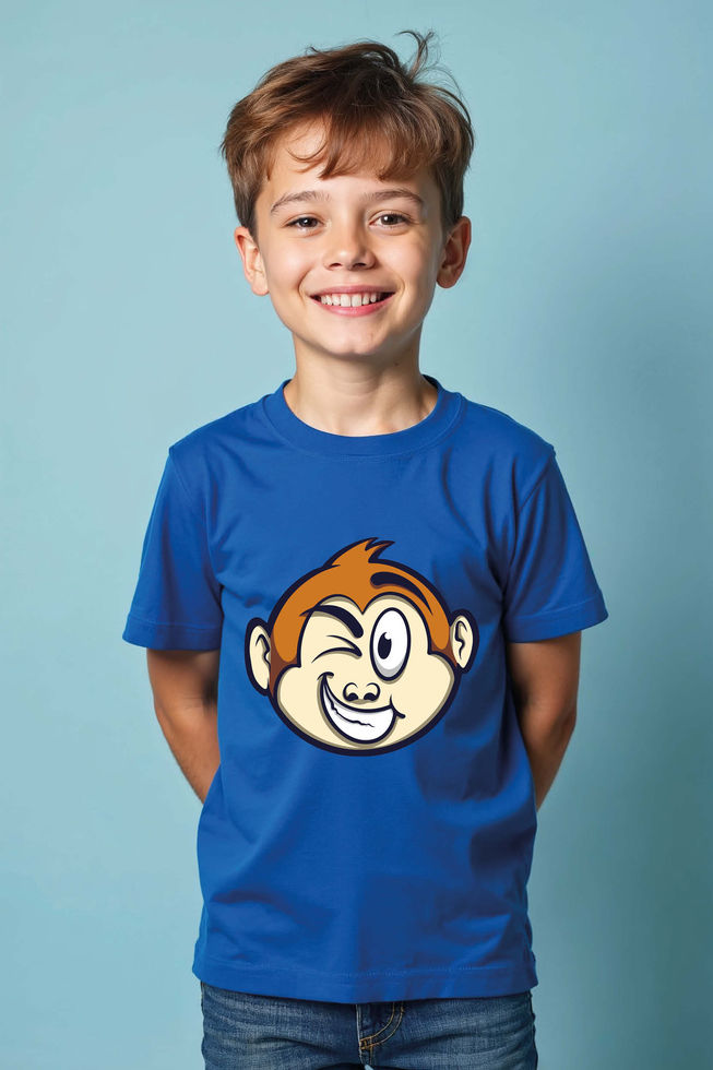 Winking Cartoon Monkey Head Kids T-Shirt Cute Trendy Printed Tee for Kids