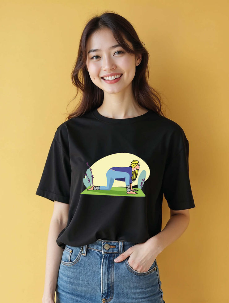 Yoga Cat-Cow Pose Stylish Women’s Printed Graphic Streetwear T-Shirt