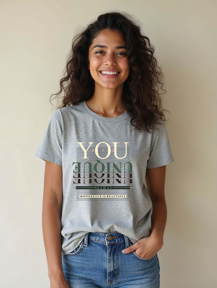 you unique so am a i difference is beautiful Cool Women’s Typography T-Shirt