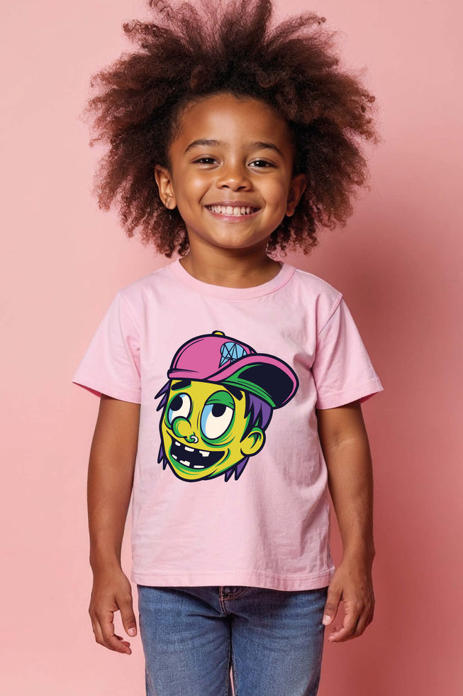 Zany Cartoon Character with Baseball Cap T-ShirtTrendy Cute Kids Typography Tee