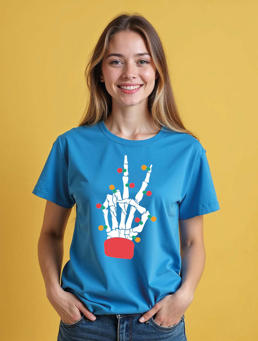 Peace Sign Skeleton Hand Christmas Trendy Women’s Printed Graphic Streetwear Tee